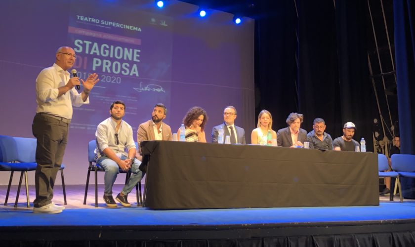 In un teatro commosso e ricco d’applausi si apre la conferenza stampa dell’ 11a Stagione di Prosa del Teatro Supercinema in ricordo di Lello Radice. Sul palco Pierluigi Fiorenza, moderatore della presentazione, il Sindaco di Castellammare di Stabia Gaetano Cimmino, il nuovo direttore artistico e attore Ernesto Lama e Giorgia Radice presidente dell’A.C.S.D TE.A.&M
