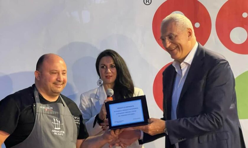 L’assessore regionale Nicola Caputo premia Luca Doro per il suo impegno per la valorizzazione delle produzioni tipiche del territorio