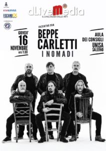 Dopo aver abbracciato il campo culinario e recitativo, è quindi il turno della musica e DLiveMedia ha scelto un ospite davvero speciale: un simbolo della tradizione musicale italiana. Si tratta di Beppe Carletti, storico fondatore dei Nomadi. L’appuntamento fa parte del ciclo DLiveMedia Masterclass, che consente agli studenti del Corso di Laurea in Scienze della Comunicazione di ottenere crediti formativi, ed è previsto giovedì 16 novembre alle ore 11.00, presso l’Aula dei Consigli dell’Università degli Studi di Salerno. In occasione dell’evento, Carletti parlerà dell’ultimo progetto discografico dei Nomadi, uscito appena qualche giorno fa.
